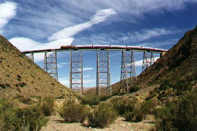 The train of clouds is a train service in Salta Province of Argentina, that connects the Argentine Northwest with the border with Chile in the Andes mountain range, over 4,220 m (13,845 ft) above mean sea level, the third highest railway in the world. Originally built for economic and social reasons, it is now of primarily touristic value as a heritage railway.
